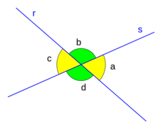 En la figura los ángulos a,c y b, d son opuestos por el vértice. Dos ángulos opuestos por el vértice son congruentes o iguales